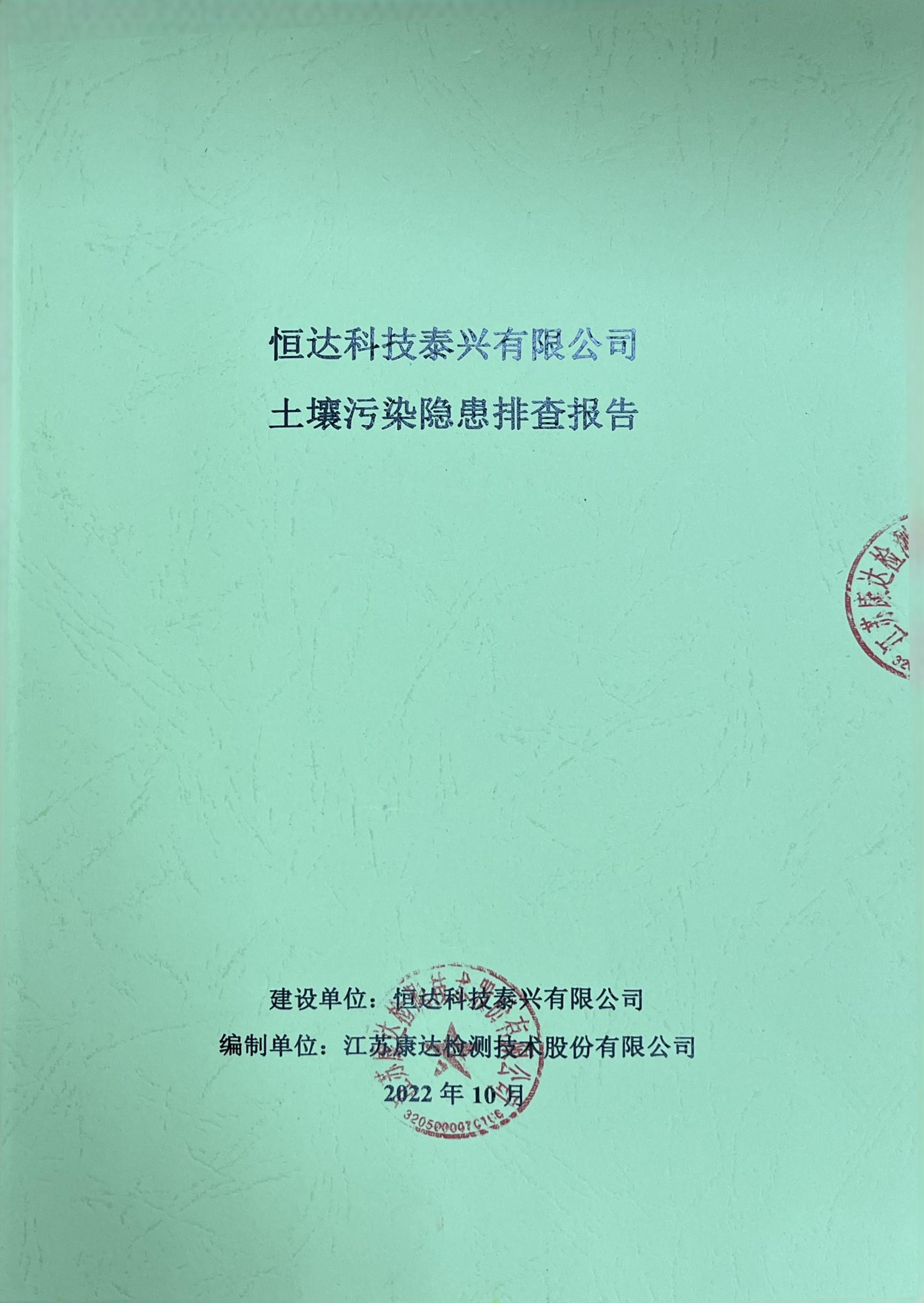 恒達(dá)科技泰興有限公司土壤污染隱患排查報(bào)告