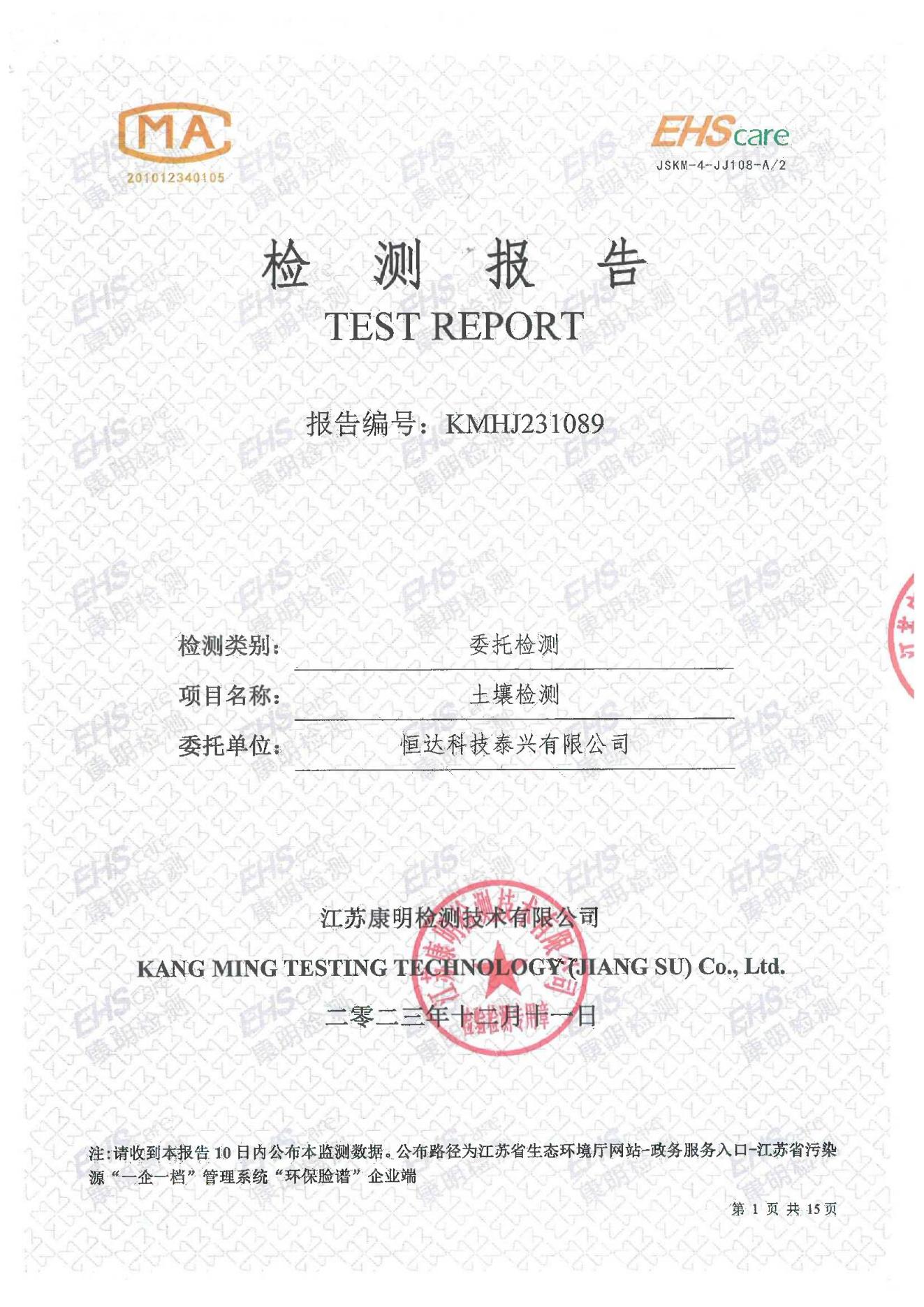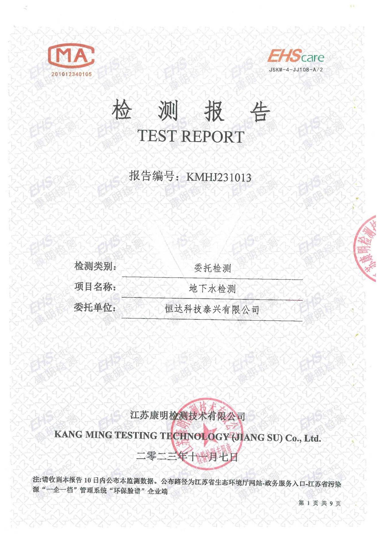 恒達(dá)科技泰興有限公司-地下水、土壤檢測(cè)報(bào)告
