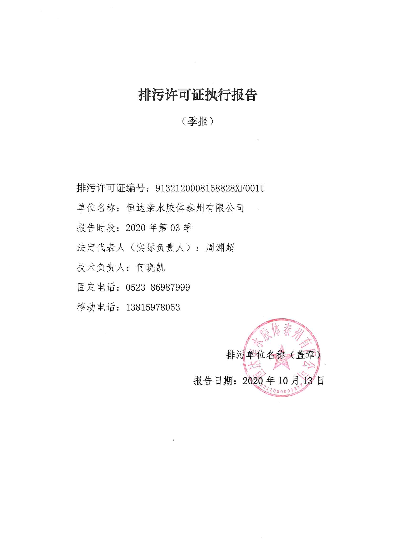 2020三季度排污許可執(zhí)行報(bào)告